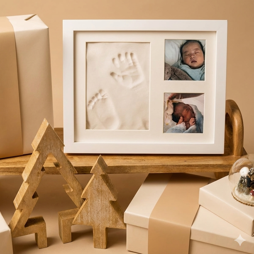 Während andere Anbieter Standarddesigns anbieten, besticht unser Erinnerungsrahmen durch Eleganz und eine persönliche Note. Sie können beruhigt sein, denn er ist ungiftig und sicher für Ihr Baby. Mit unserem Komplettset wird das Festhalten schöner Erinnerungen zum Kinderspiel.